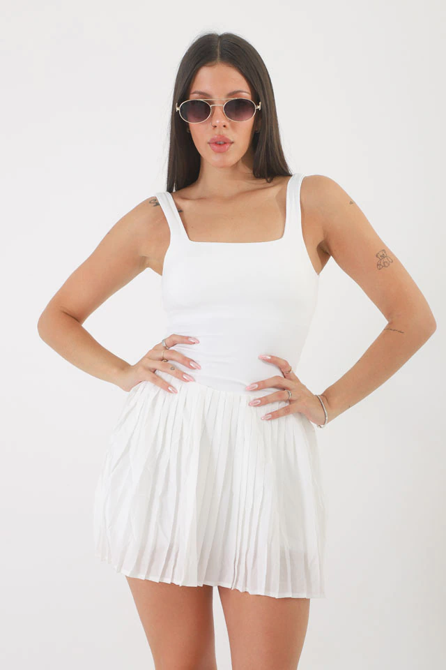 Descubrí el Vestido Queen, diseñado para brindarte libertad de movimiento y un ajuste perfecto mientras practicas tu deporte favorito. Con un corte musculosa y falda plisada con short incorporado, combina comodidad y estilo en cada entrenamiento.